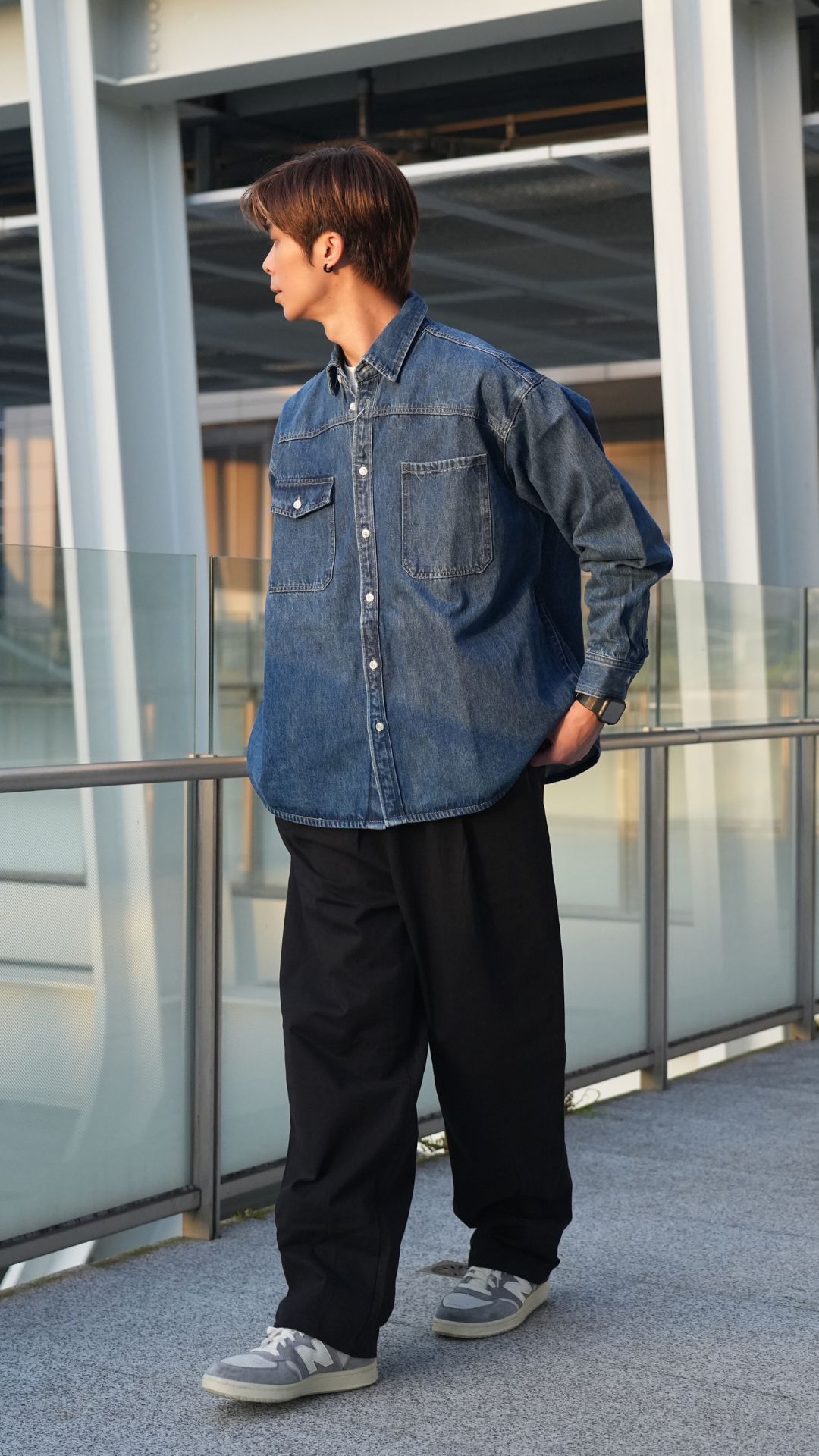 版型為廓型寬鬆設計,加上較厚重的牛仔面料,