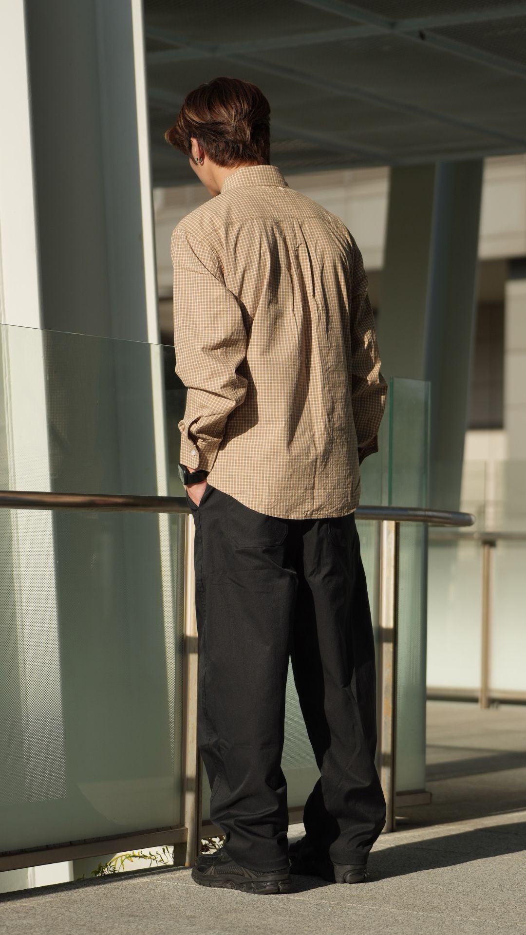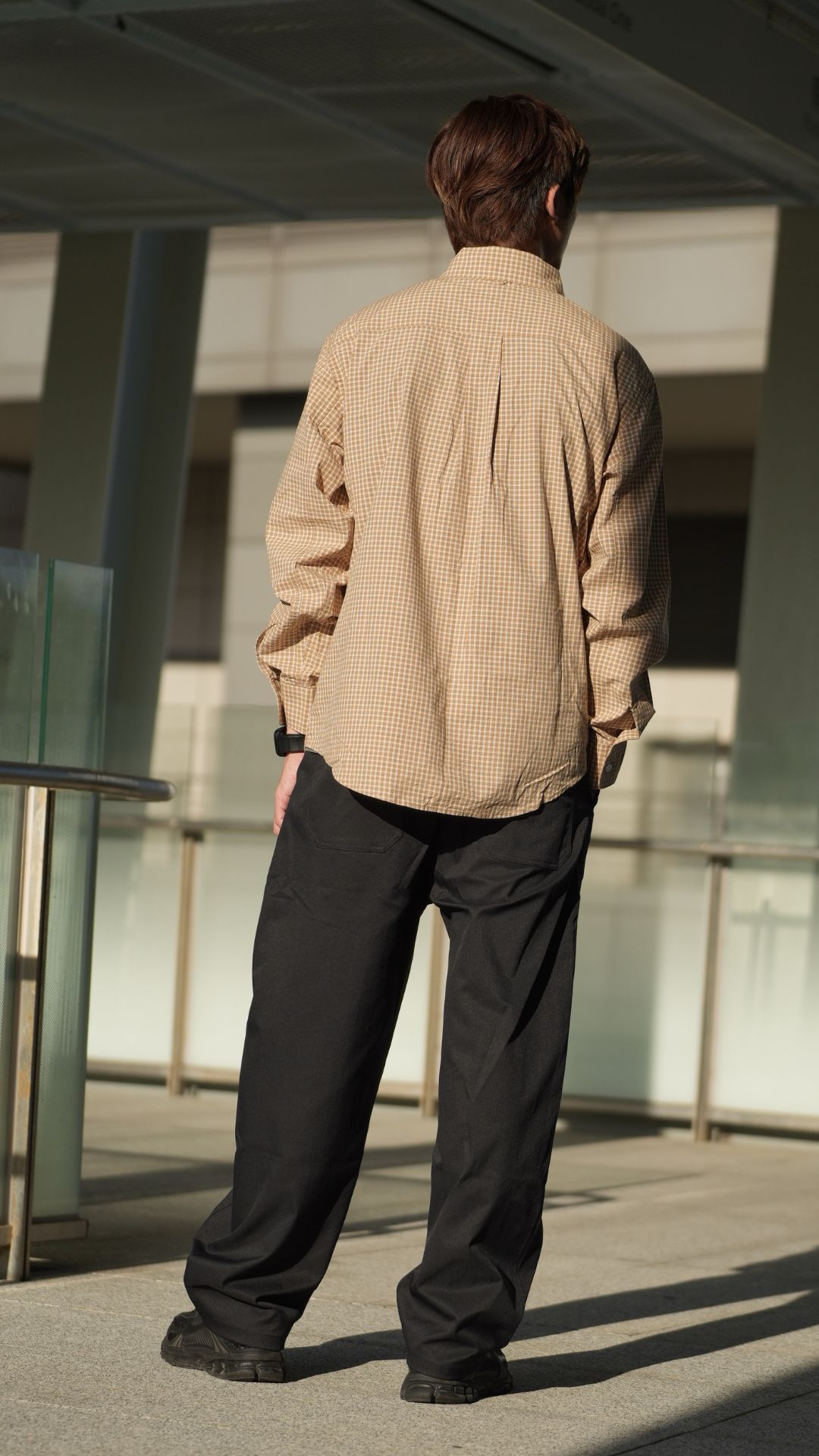 【 Miu系寬鬆廓形格紋長袖襯衫 】